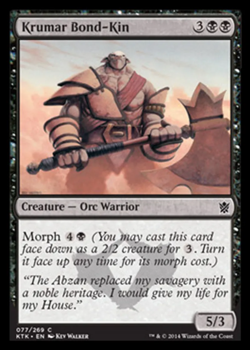 Krumar Bond-Kin is a Common in the set Khans of Tarkir.