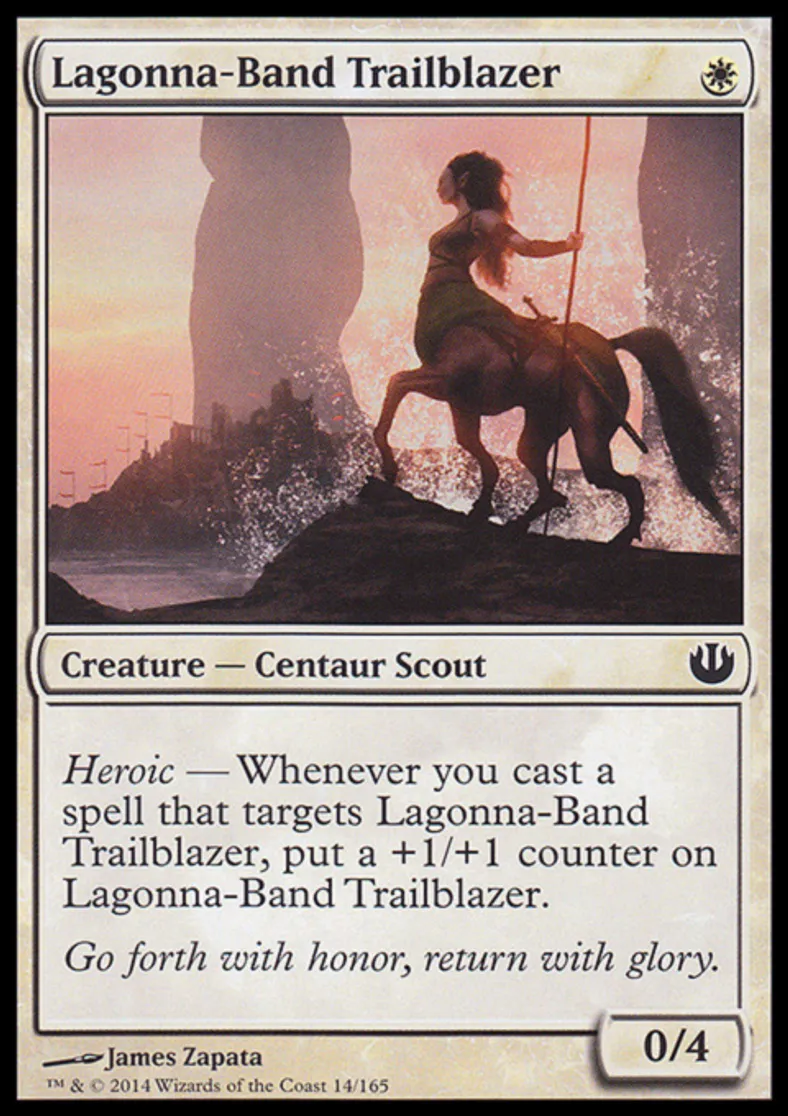 | Oracle Text | Heroic — Whenever you cast a spell that targets Lagonna-Band Trailblazer, put a +1/+1 counter on Lagonna-Band Trailblazer. | ||