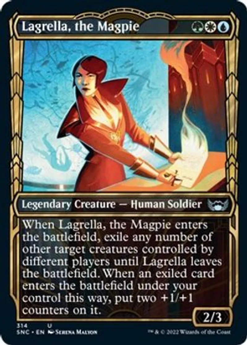 Magic: the Gathering (mtg) Uncommon Legendary Creature — Human Soldier Lagrella, the Magpie from Streets of New Capenna (SNC) last updated 2026-02-21 16:05:33