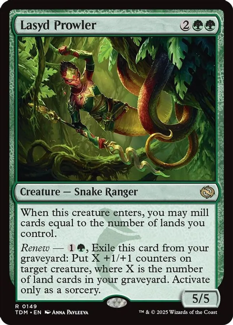 Magic: the Gathering (mtg) Rare creature — snake ranger Lasyd Prowler from Tarkir: Dragonstorm (TDM) last updated 2026-02-21 15:39:01