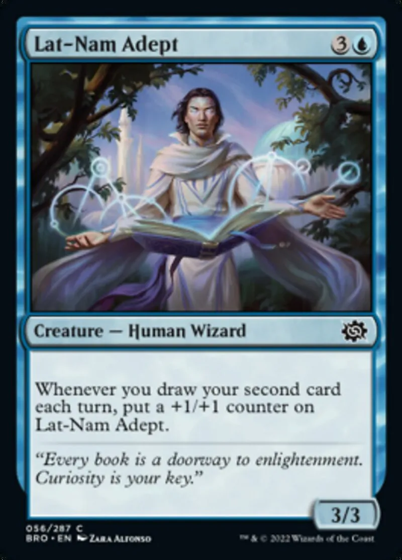 | Oracle Text | Whenever you draw your second card each turn, put a +1/+1 counter on Lat-Nam Adept. | ||