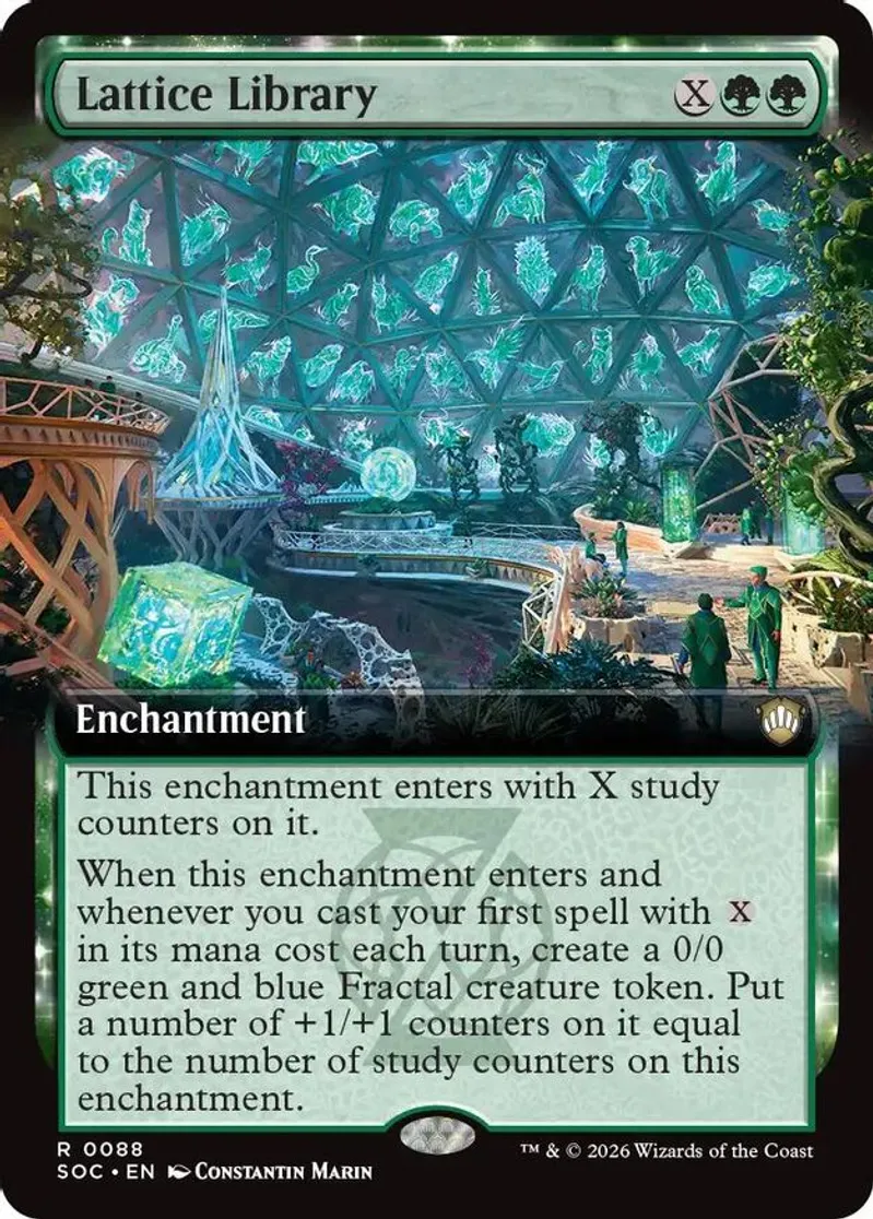 Magic: the Gathering (mtg) Rare enchantment Lattice Library from Commander: Secrets of Strixhaven (SOC) last updated 2026-04-17 00:31:03