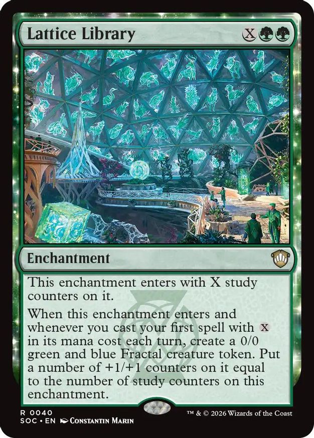Magic: the Gathering (mtg) Rare enchantment Lattice Library from Commander: Secrets of Strixhaven (SOC) last updated 2026-04-17 00:18:12