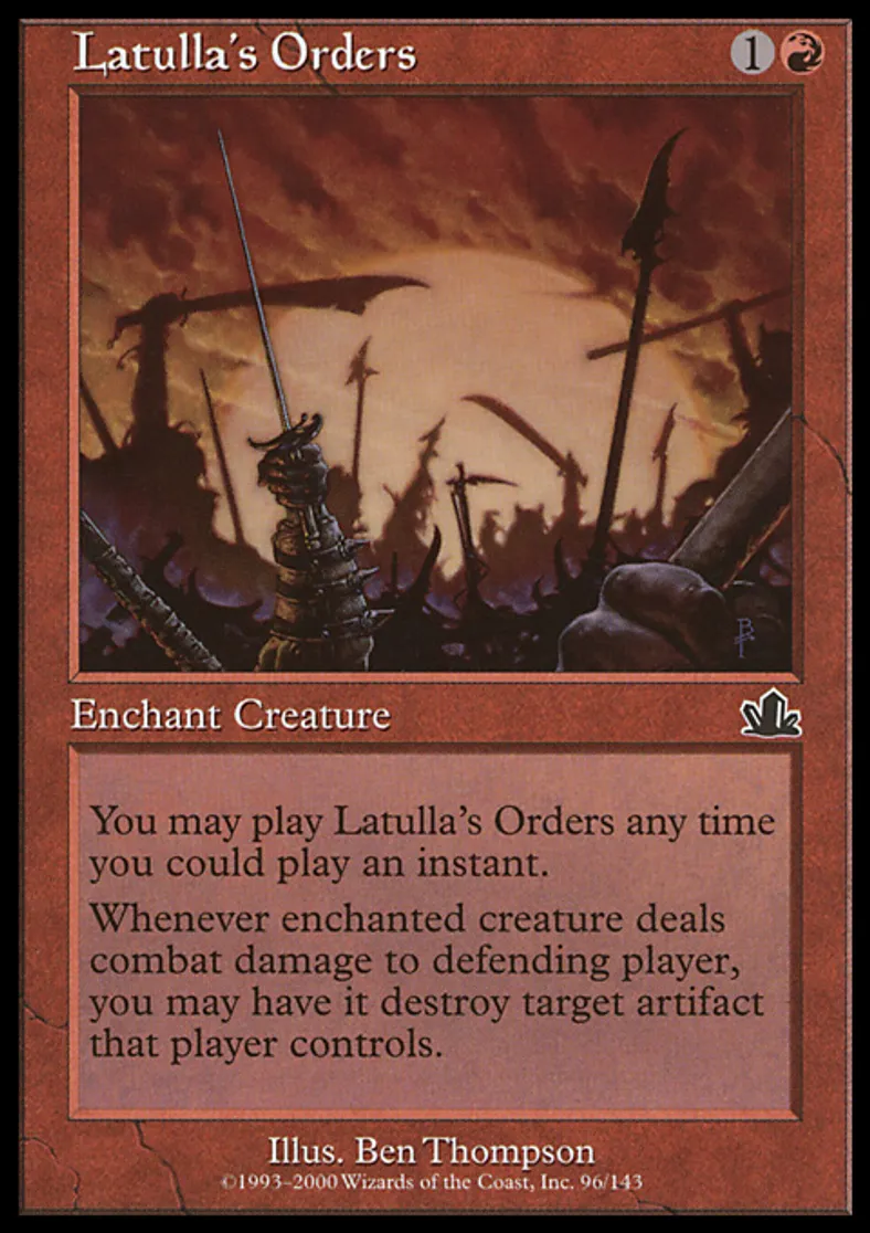 Magic: the Gathering (mtg) Common Enchantment - Aura Latulla's Orders from Prophecy (PCY) last updated 2026-02-21 17:35:36