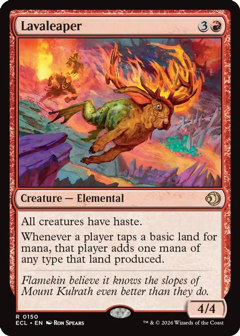 Magic: the Gathering (mtg) Rare creature — elemental Lavaleaper from Lorwyn Eclipsed (ECL) last updated 2026-01-11 16:16:06
