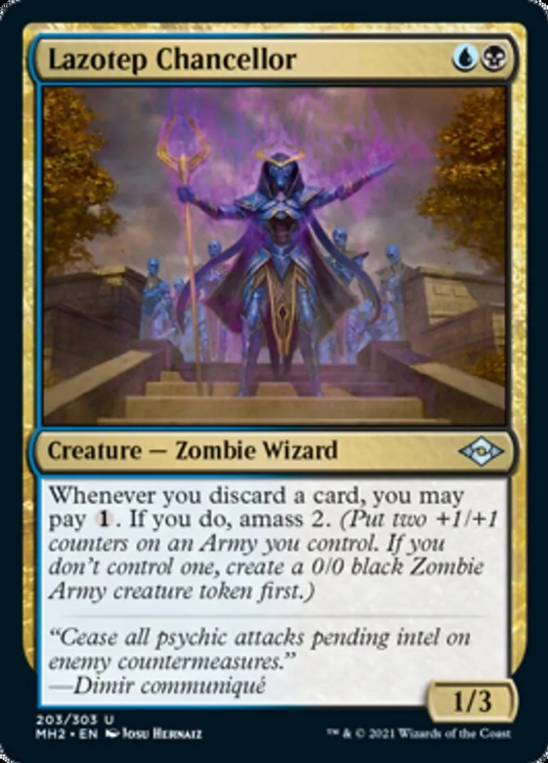 Magic: the Gathering (mtg) uncommon Creature — Zombie Wizard Lazotep Chancellor from Modern Horizons 2 (mh2) last updated 2026-02-21 16:38:02