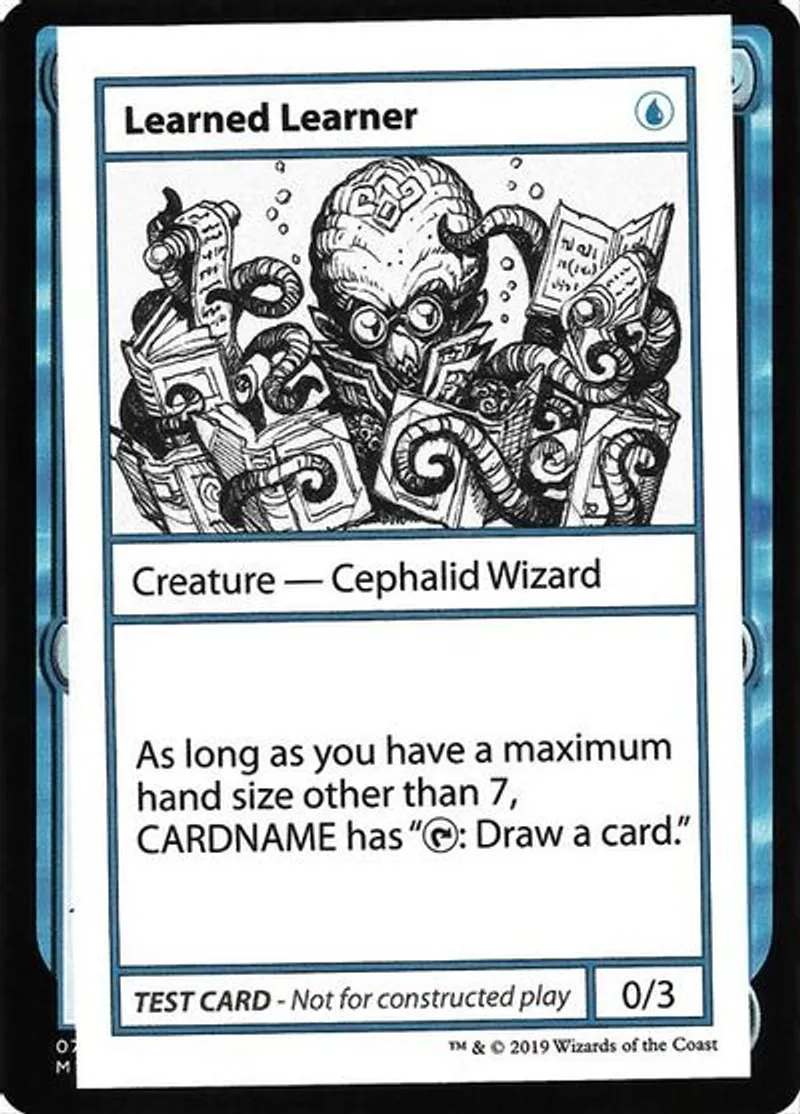 | Oracle Text | As long as you have a maximum hand size other than 7, Learned Learner has “{{t}}: Draw a card.” | ||