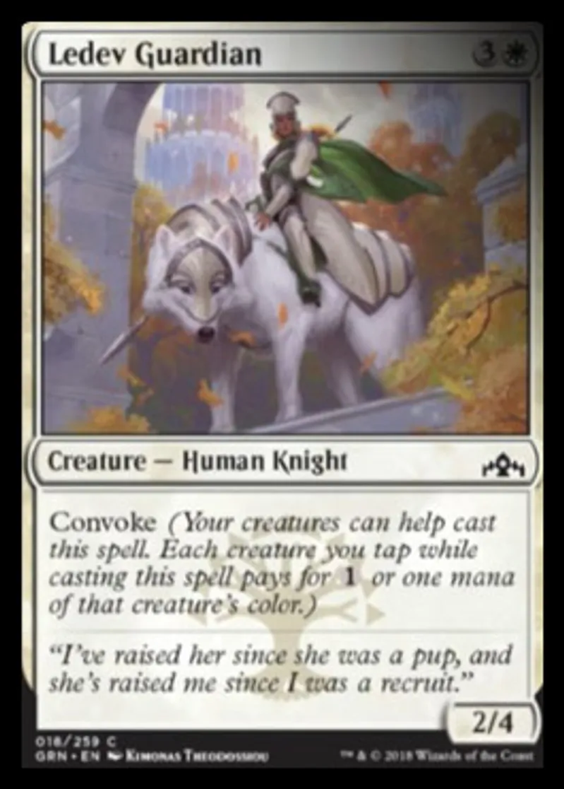 Magic: the Gathering (mtg) Common Creature - Human Knight Ledev Guardian from Guilds of Ravnica (GRN) last updated 2026-02-21 16:54:37