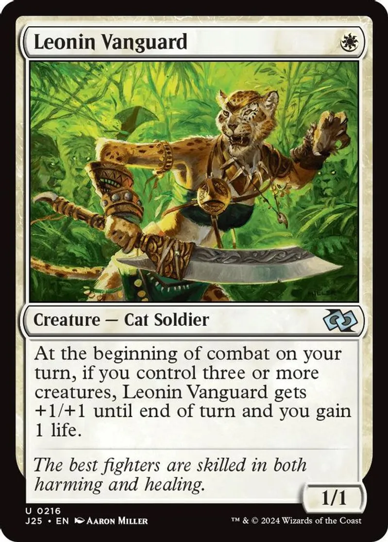 Magic: the Gathering (mtg) Uncommon creature — cat soldier Leonin Vanguard from Foundations Jumpstart (J25) last updated 2026-02-21 15:33:32