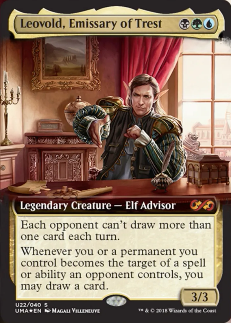 Magic: the Gathering (mtg) Mythic Rare Legendary Creature — Elf Advisor Leovold, Emissary of Trest from Ultimate Masters: Box Toppers (pUMA) last updated 2026-02-24 16:07:02