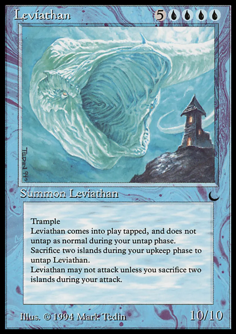 | Oracle Text | Trample Leviathan enters the battlefield tapped and doesn't untap during your untap step. At the beginning of your upkeep, you may sacrifice two Islands. If you do, untap Leviathan. Leviathan can't attack unless you sacrifice two Islands. | ||