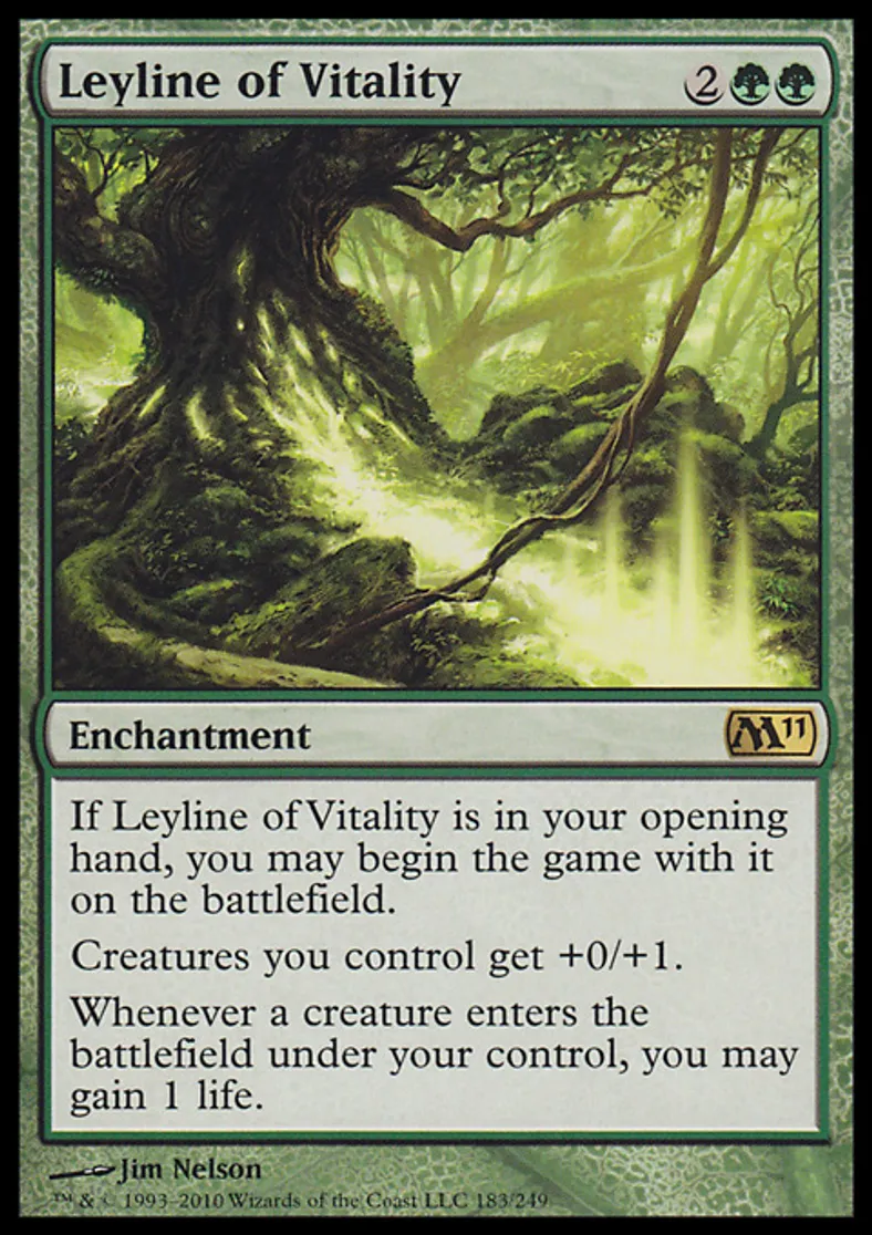 Magic: the Gathering (mtg) Rare Enchantment Leyline of Vitality from Magic 2011 (M11) last updated 2026-02-25 15:57:06
