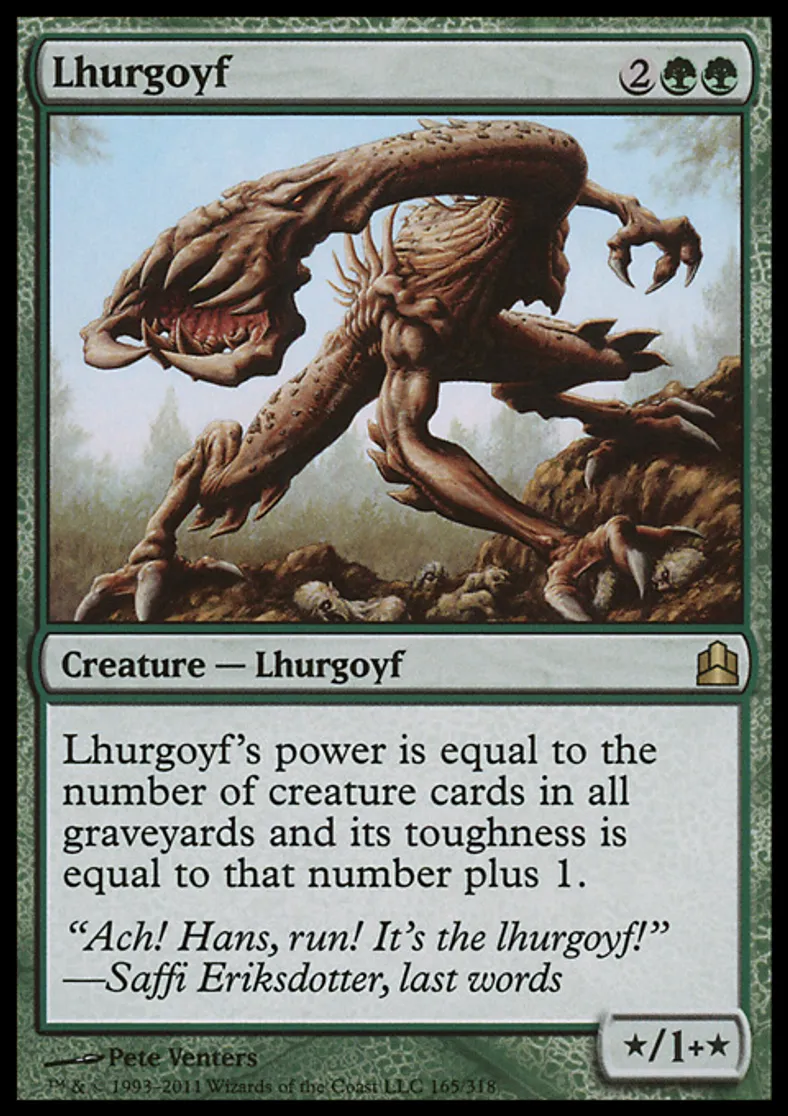 | Oracle Text | Lhurgoyf's power is equal to the number of creature cards in all graveyards and its toughness is equal to that number plus 1. | ||