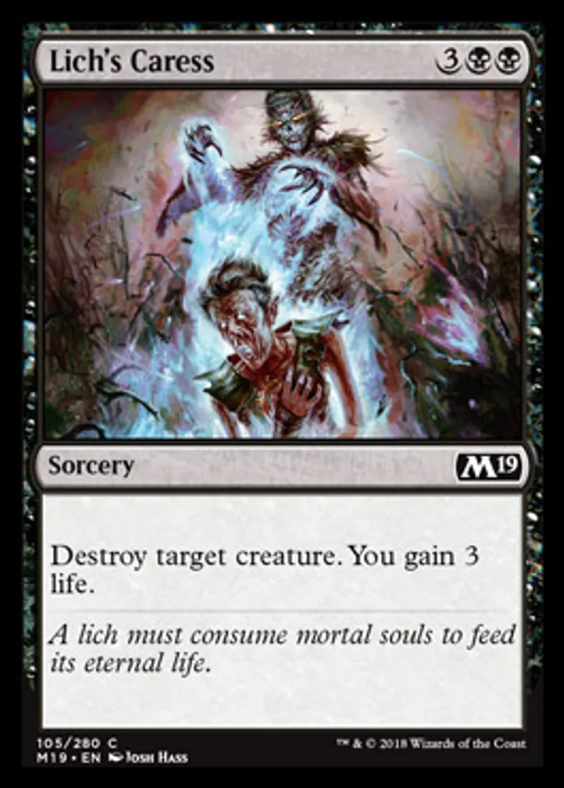 Magic: the Gathering (mtg) Common Sorcery Lich's Caress from Core Set 2019 (M19) last updated 2026-02-21 16:53:03