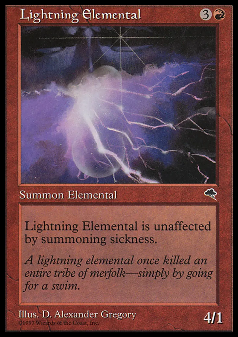 Magic: the Gathering (mtg) Common Creature - Elemental Lightning Elemental from Tempest (TMP) last updated 2026-02-07 17:31:36