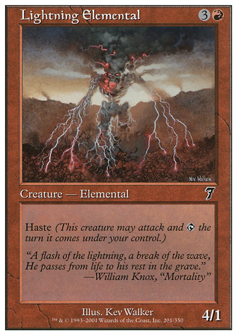 Lightning Elemental is a Common in the set Seventh Edition.