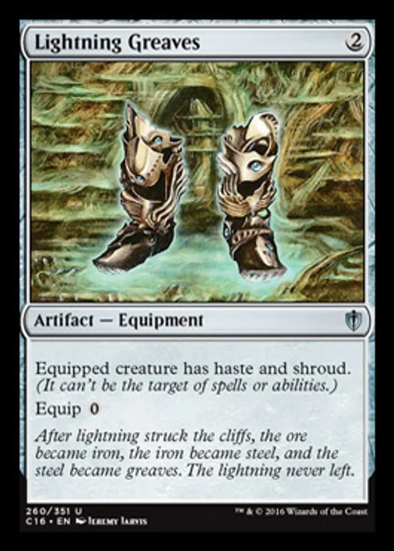 Magic: the Gathering (mtg) Uncommon Artifact - Equipment Lightning Greaves from Commander 2016 (C16) last updated 2026-02-10 15:11:33