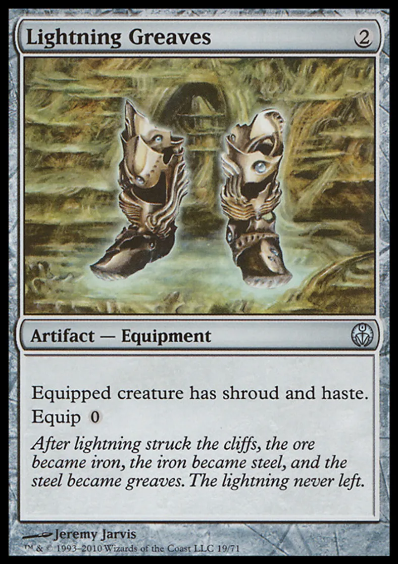 Magic: the Gathering (mtg) Uncommon Artifact - Equipment Lightning Greaves from Duel Decks: Phyrexia vs. the Coalition (DDE) last updated 2026-02-10 14:47:36