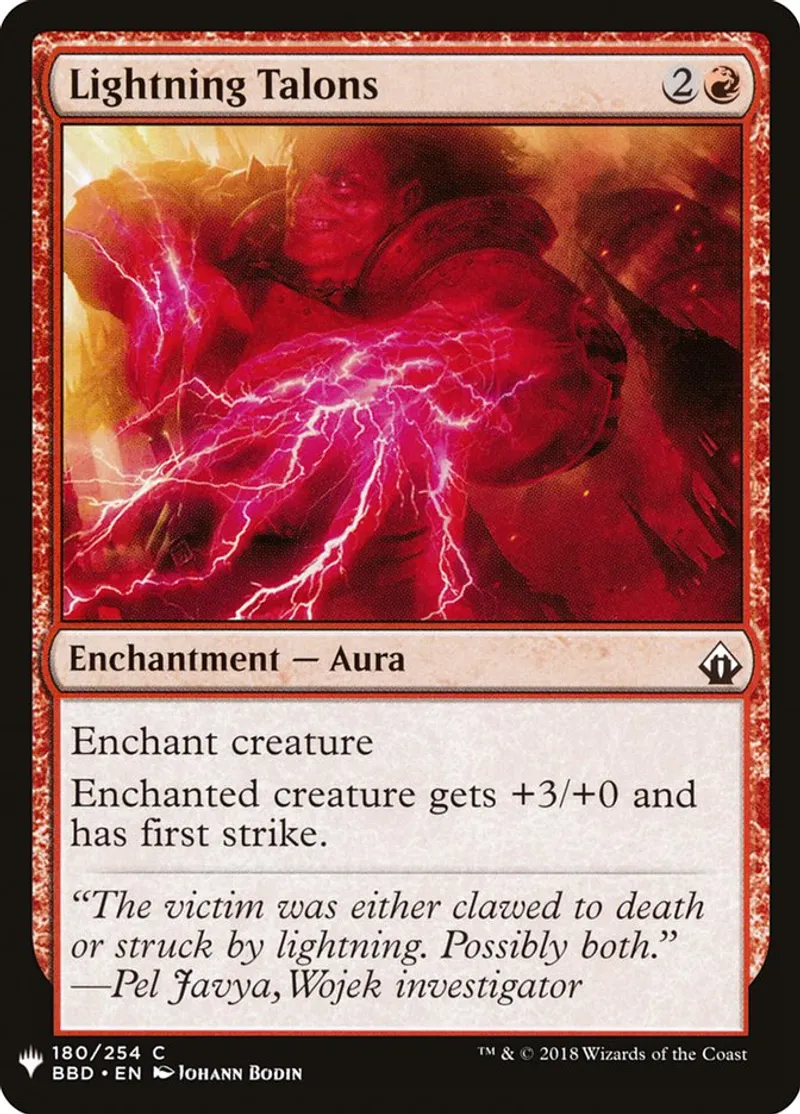 Magic: the Gathering (mtg) common Enchantment — Aura Lightning Talons from Mystery Booster (mb1) last updated 2026-02-21 17:05:36