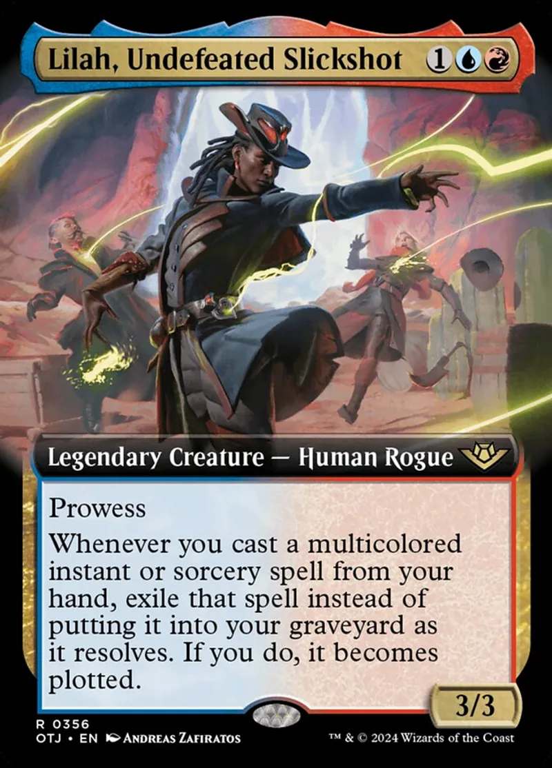 Lilah, Undefeated Slickshot (Extended Art) is a rare in the set Outlaws of Thunder Junction.