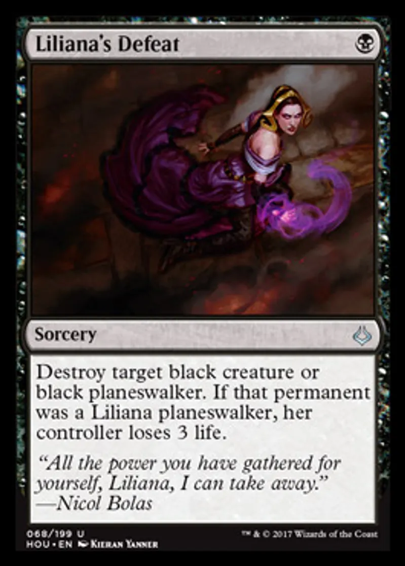 Magic: the Gathering (mtg) Uncommon Sorcery Liliana's Defeat from Hour of Devastation (HOU) last updated 2026-02-21 16:47:01