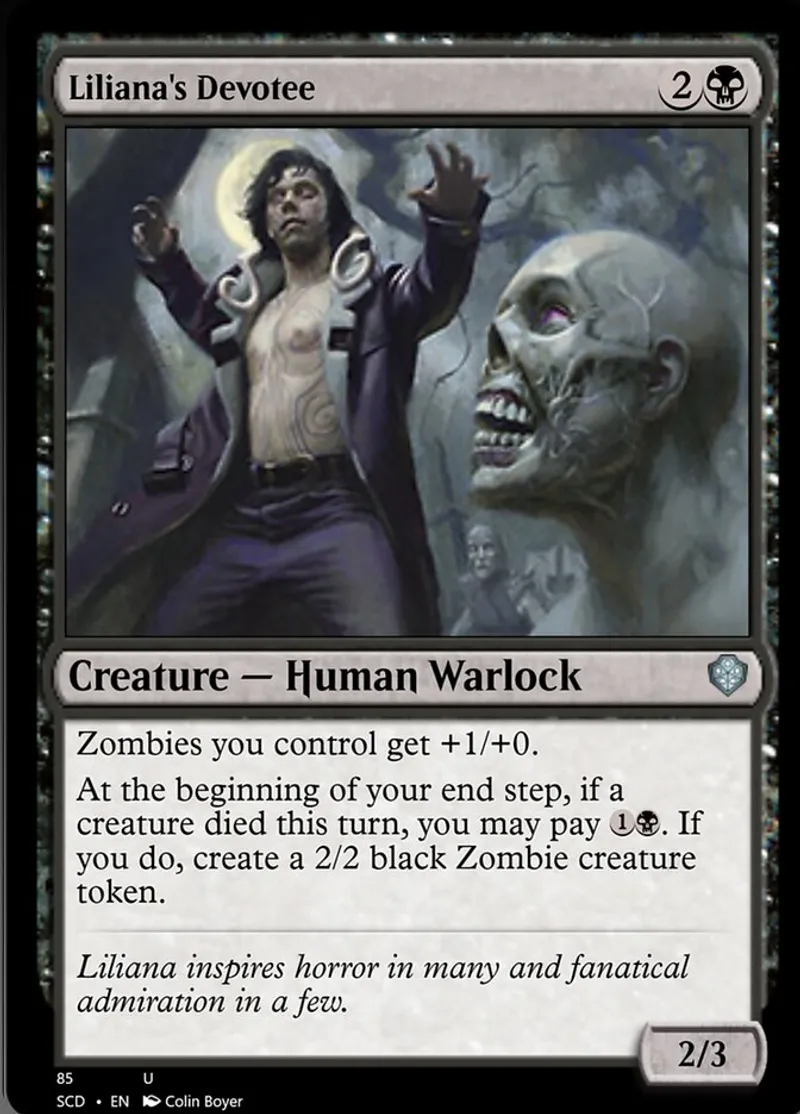 Magic: the Gathering (mtg) uncommon Creature — Human Warlock Liliana's Devotee from Starter Commander Decks (scd) last updated 2026-02-21 16:19:02