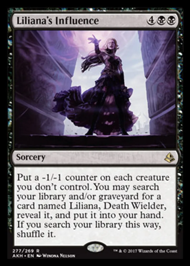 Magic: the Gathering (mtg) Rare Sorcery Liliana's Influence from Amonkhet (AKH) last updated 2026-02-21 16:46:02