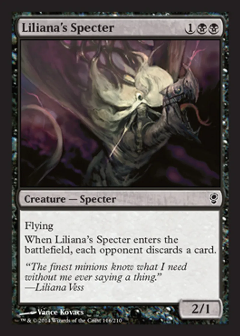 | Oracle Text | Flying When Liliana's Specter enters the battlefield, each opponent discards a card. | ||