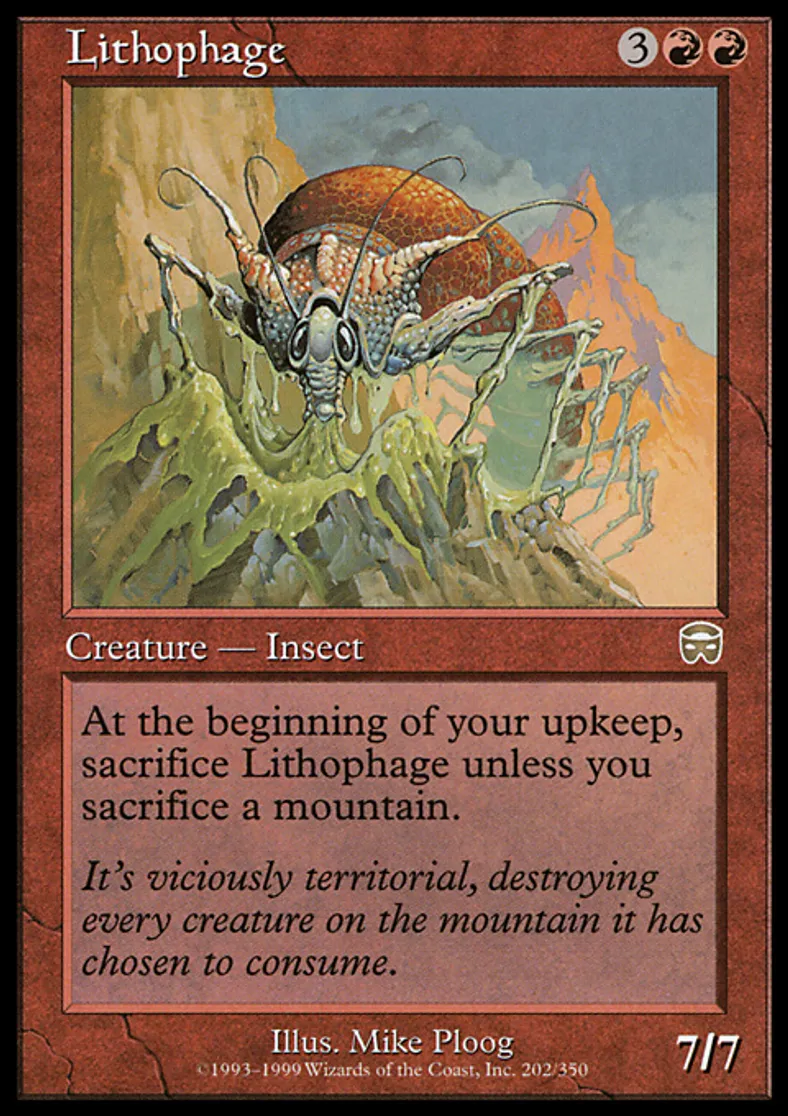 | Oracle Text | At the beginning of your upkeep, sacrifice Lithophage unless you sacrifice a Mountain. | ||