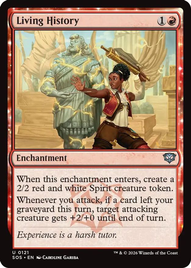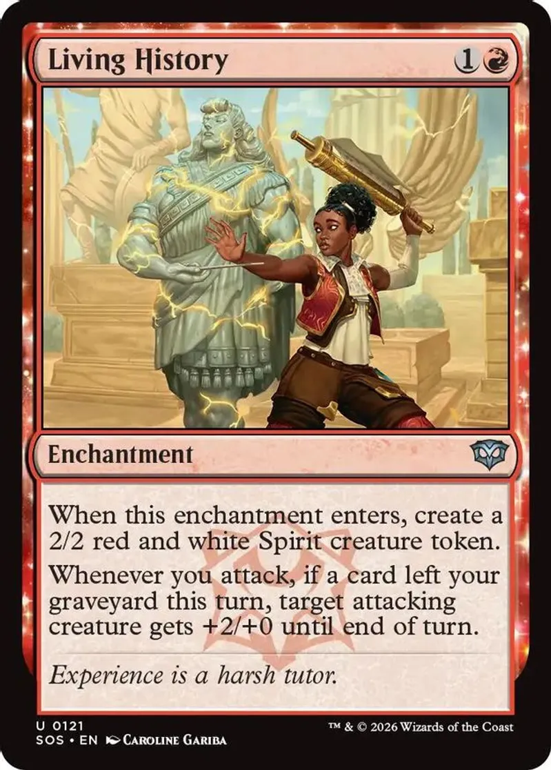 Magic: the Gathering (mtg) Uncommon enchantment Living History from Secrets of Strixhaven (SOS) last updated 2026-04-16 23:17:05