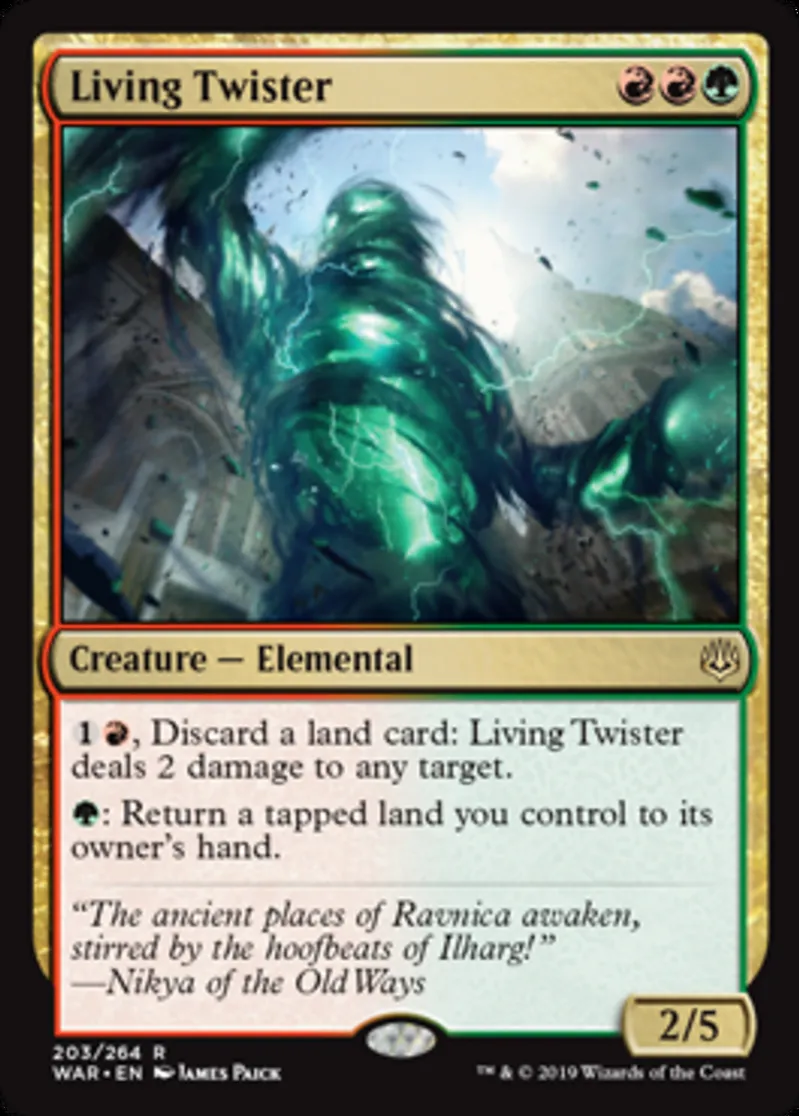 | Oracle Text | {1}{R}, Discard a land card: Living Twister deals 2 damage to any target.