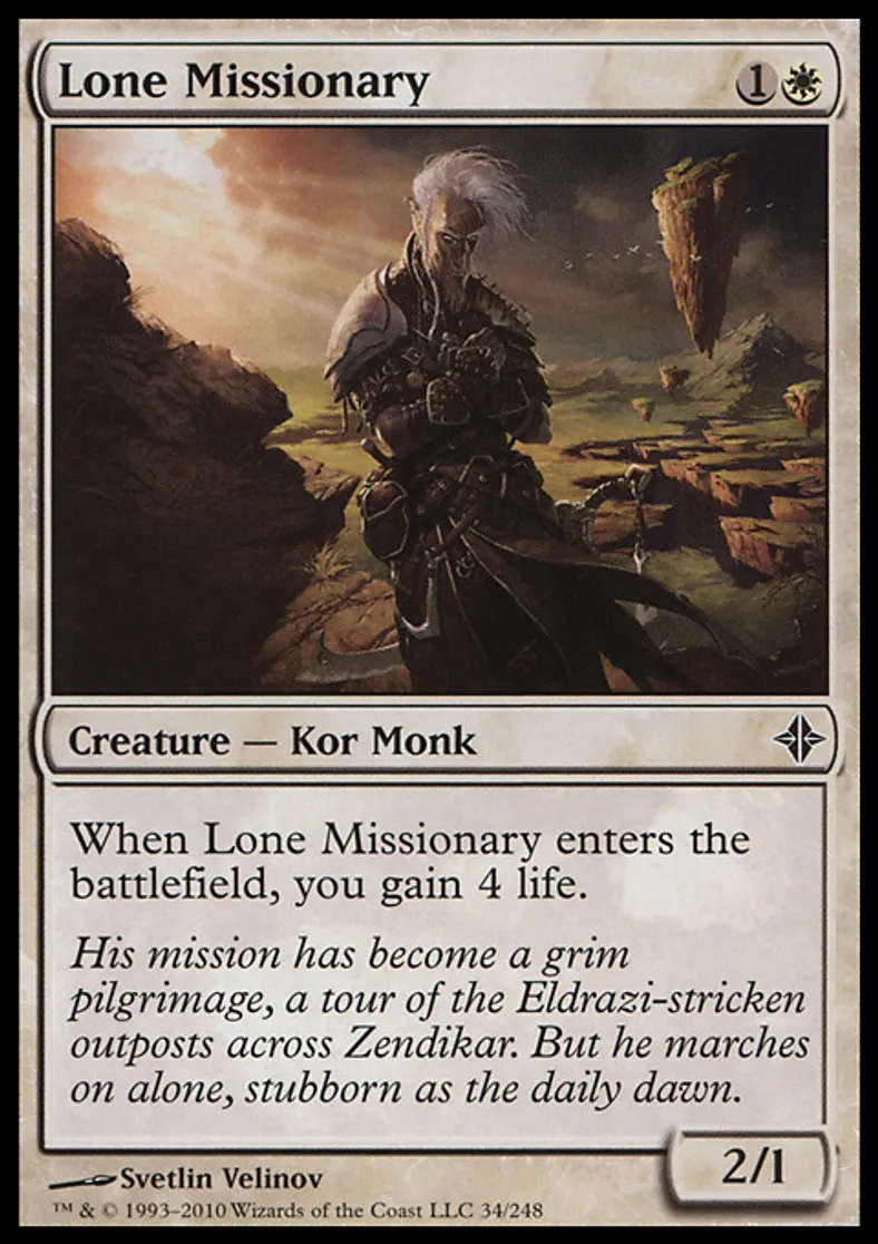 | Oracle Text | When Lone Missionary enters the battlefield, you gain 4 life. | ||