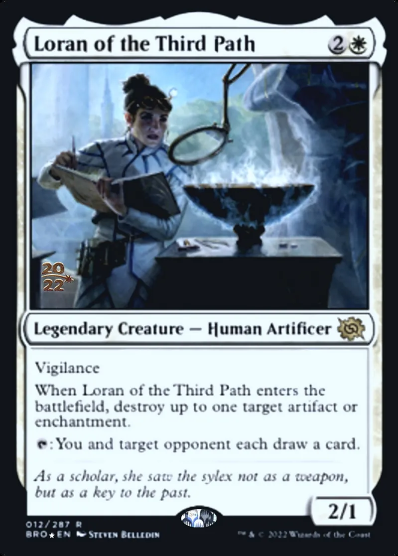 Magic: the Gathering (mtg) Rare Legendary Creature — Human Artificer Loran of the Third Path from Prerelease Cards (pPRE) last updated 2026-02-24 14:25:32