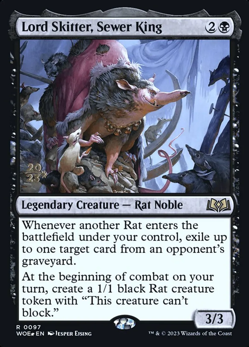 Magic: the Gathering (mtg) Rare Legendary Creature — Rat Noble Lord Skitter, Sewer King from Prerelease Cards (pPRE) last updated 2026-02-25 14:29:02