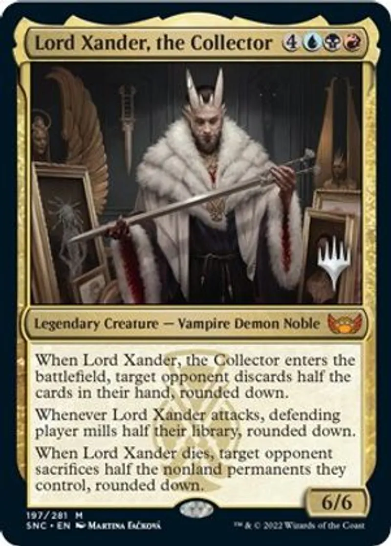 | Oracle Text | When Lord Xander, the Collector enters the battlefield, target opponent discards half the cards in their hand, rounded down.
