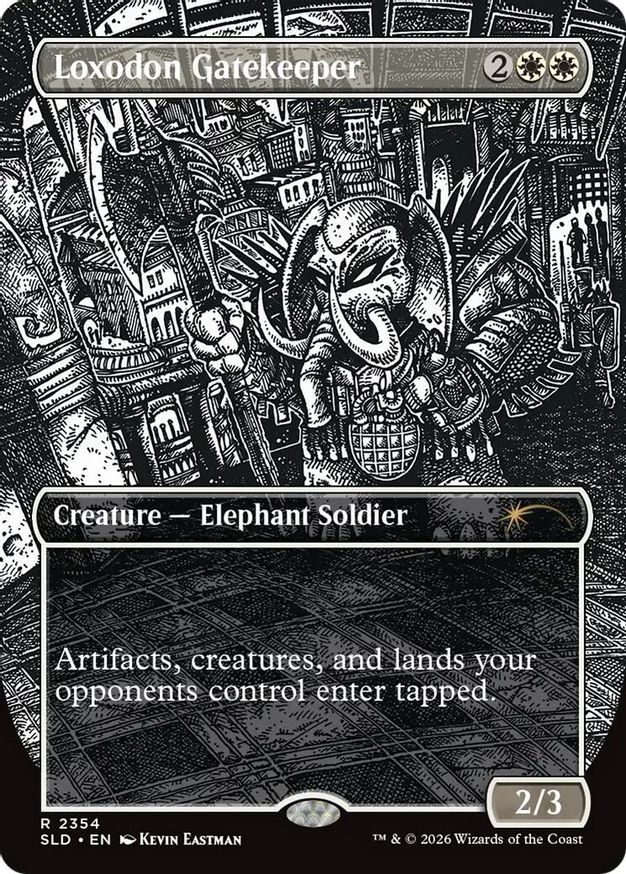 Magic: the Gathering (mtg) Rare creature — elephant soldier Loxodon Gatekeeper from Secret Lair Drop Series (SLD) last updated 2026-03-03 02:57:01