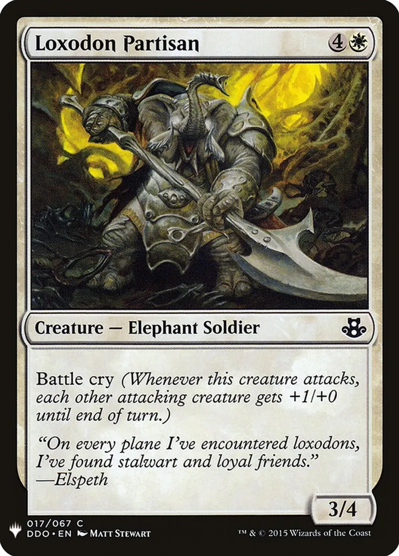 Magic: the Gathering (mtg) common Creature — Elephant Soldier Loxodon Partisan from Mystery Booster (mb1) last updated 2026-02-21 17:04:32