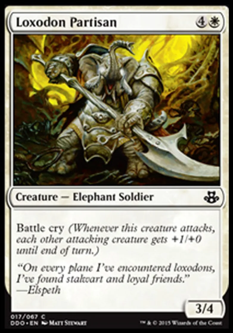 Loxodon Partisan is a Common in the set Duel Decks: Elspeth vs. Kiora.