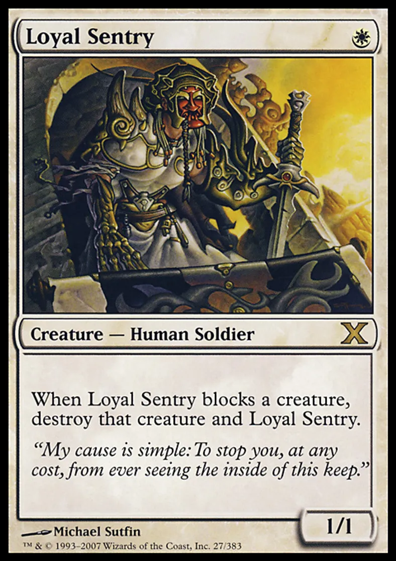 | Oracle Text | When Loyal Sentry blocks a creature, destroy that creature and Loyal Sentry. | ||