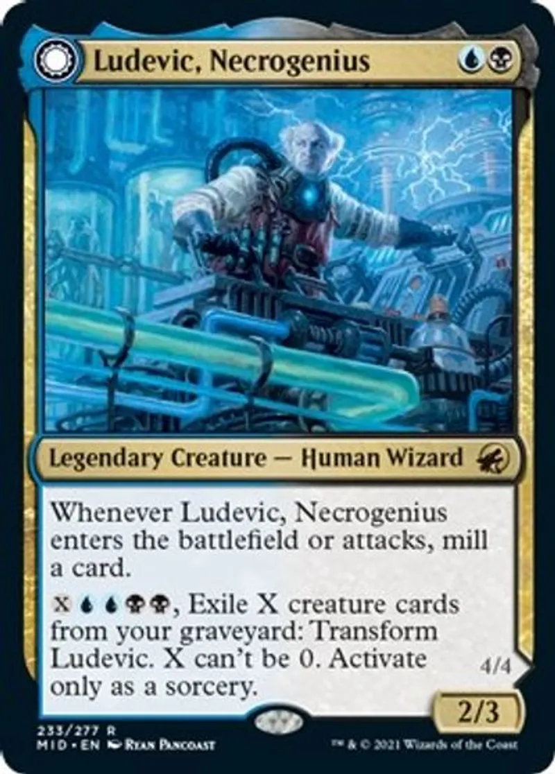 Magic: the Gathering (mtg) Rare Legendary Creature — Human Wizard Ludevic, Necrogenius from Innistrad: Midnight Hunt (mid) last updated 2026-02-21 16:42:02