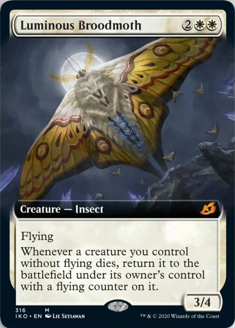 Luminous Broodmoth (Extended Art) is a Mythic Rare in the set Ikoria: Lair of Behemoths.