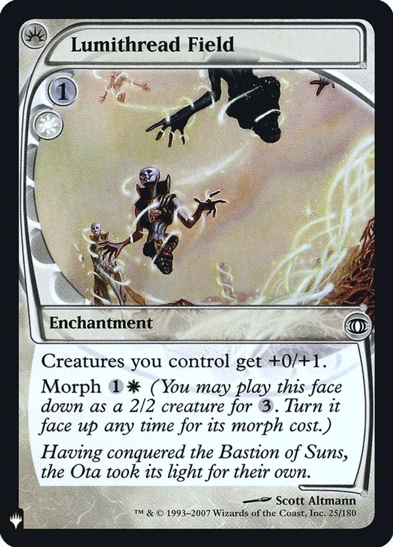 Magic: the Gathering (mtg) common Enchantment Lumithread Field from Mystery Booster Retail Edition Foils (FMB1) last updated 2026-02-21 16:23:32