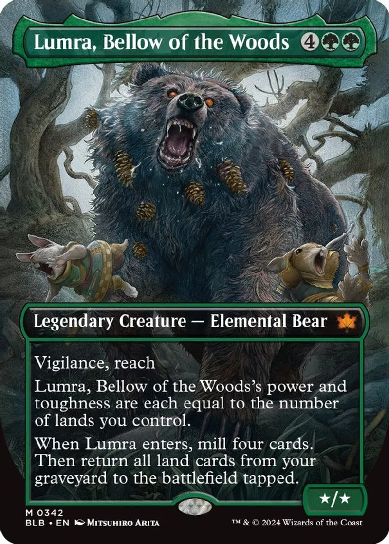 Magic: the Gathering (mtg) Mythic Rare legendary creature — elemental bear Lumra, Bellow of the Woods from Bloomburrow (BLB) last updated 2026-02-24 14:19:32