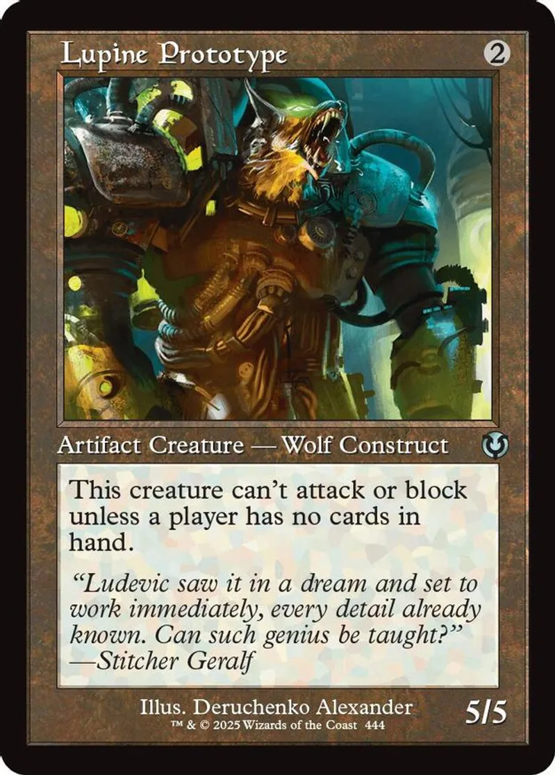 Magic: the Gathering (mtg) Uncommon artifact creature — wolf construct Lupine Prototype from Innistrad Remastered (INR) last updated 2026-04-11 15:36:35