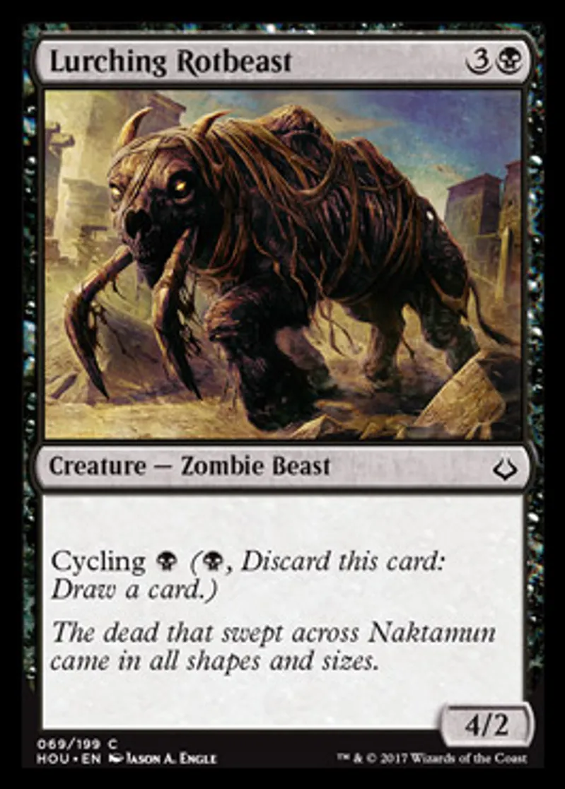 Lurching Rotbeast is a Common in the set Hour of Devastation.