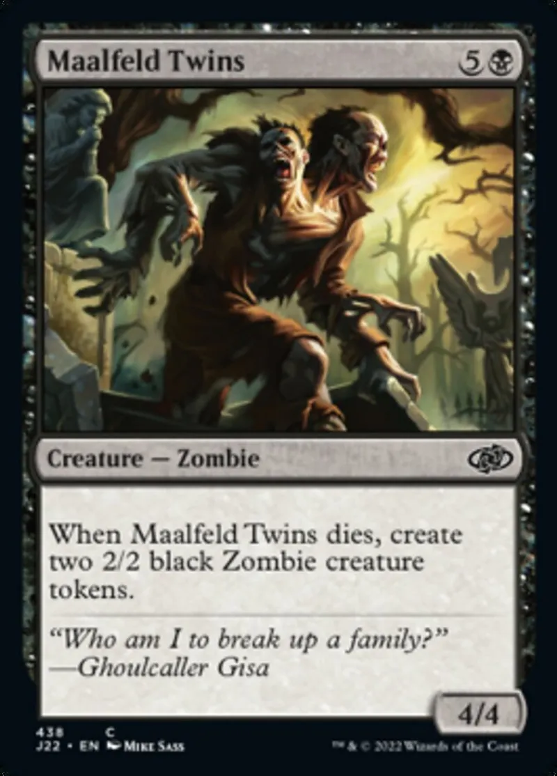 Magic: the Gathering (mtg) common Creature — Zombie Maalfeld Twins from Jumpstart 2022 (j22) last updated 2026-02-21 16:17:32
