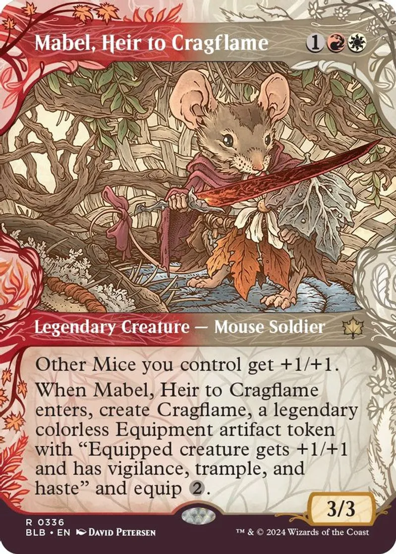Magic: the Gathering (mtg) Rare legendary creature — mouse soldier Mabel, Heir to Cragflame from Bloomburrow (BLB) last updated 2025-12-13 15:22:02