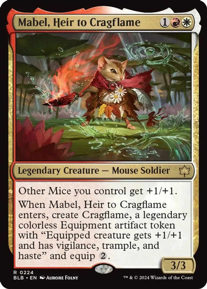 Magic: the Gathering (mtg) Rare legendary creature — mouse soldier Mabel, Heir to Cragflame from Bloomburrow (BLB) last updated 2025-12-15 15:13:03