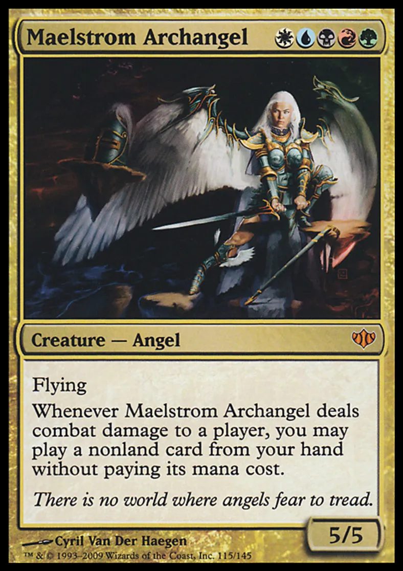 | Oracle Text | Flying Whenever Maelstrom Archangel deals combat damage to a player, you may cast a nonland card from your hand without paying its mana cost. | ||