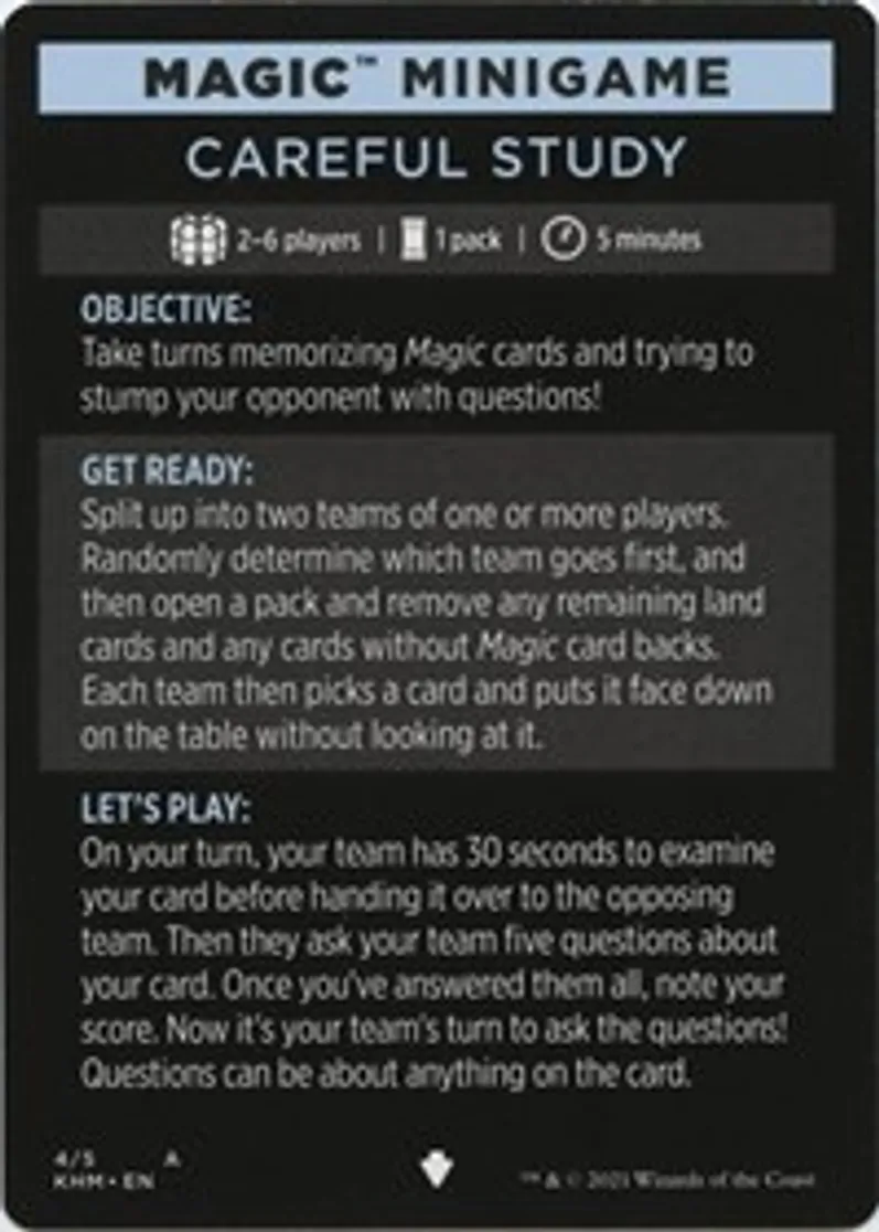 Magic: the Gathering (mtg) Special Minigame Reminder Magic Minigame: Careful Study from Kaldheim Tokens (TKHM) last updated 2026-02-21 16:39:02